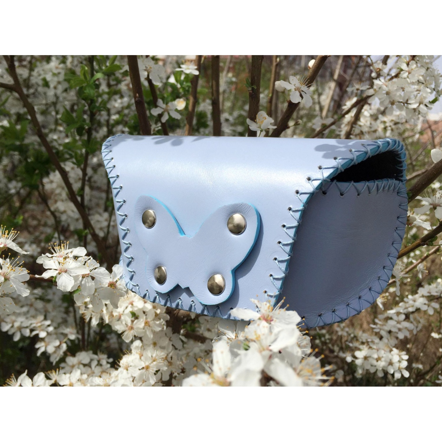 Baby Blue Leather Sunglasses Hansewn Case
