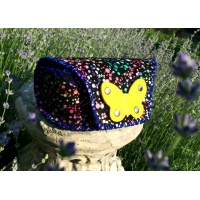 Colorful Printed Black Camoscio Leather with a Yellow Butterfly Sunglasses Handsewn Case