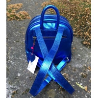 Rucsac din piele naturala albastru metalic. Rucsacul este intarit cu salpa, este captusit(satin printat cu litere), compartimentat (in interior exista un buzunar cu fermoar precum inca unul si pe spatele rucsacului, pe exterior) si este prevazut cu fermoare metalice de cea mai buna calitate. Dimensiuni: 23cm/26cm. Rucsacul este un produs cusut manual in Romania care se poate comanda pe orice culoare si are termen de realizare 10 zile lucratoare.