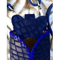 Husa pentru telefon cusuta manual din piele velur bleumarin cu print croco. Husa este perfecta pentru a fi oferita cadou si foarte practica avand o curea asortata care poate fi purtata crossbody si este reglabila, prevazuta cu doua carabine astfel detasabila fiindse poate purta si in geanta sau rucsac. Accesoriu versatil decorat cu un fluturas ca si capac, realizat tot manual din aceeasi piele asortata. Produsul este captusit cu piele naturala si intarit cu salpa iar marginile sunt vopsite cu vopsea de cant inainte de a fi cusute. Dimensiuni:18cm/11cm. Produs in serie limitata, realizat manual, aici in Romania. Comenzi personalizate cu livrare in 10 zile lucratoare.