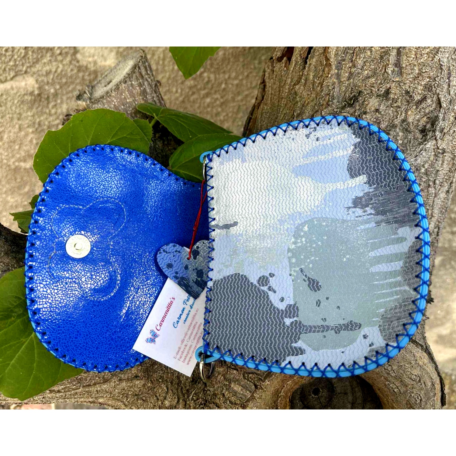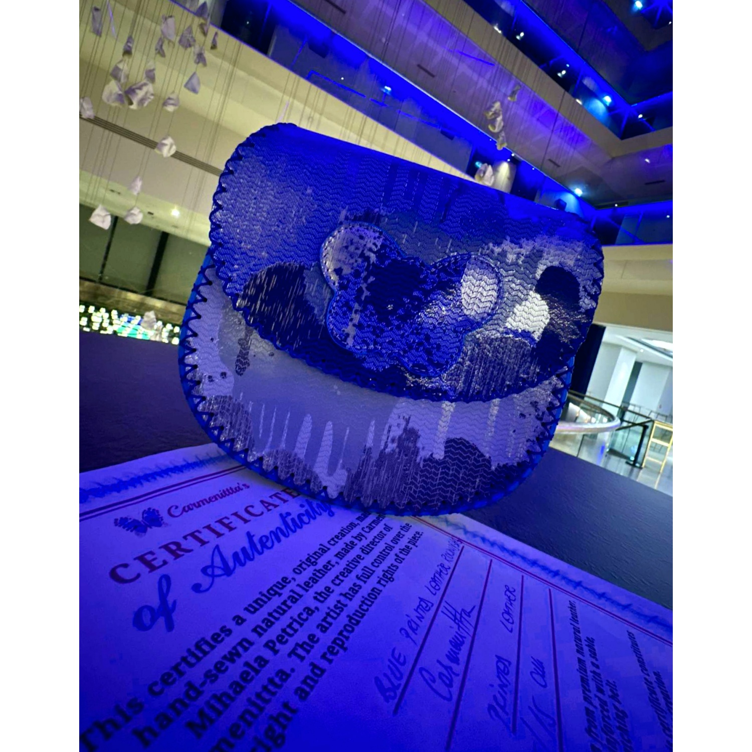 Shiny Dripping Fluid Blue Leather Handsewn Roundbag