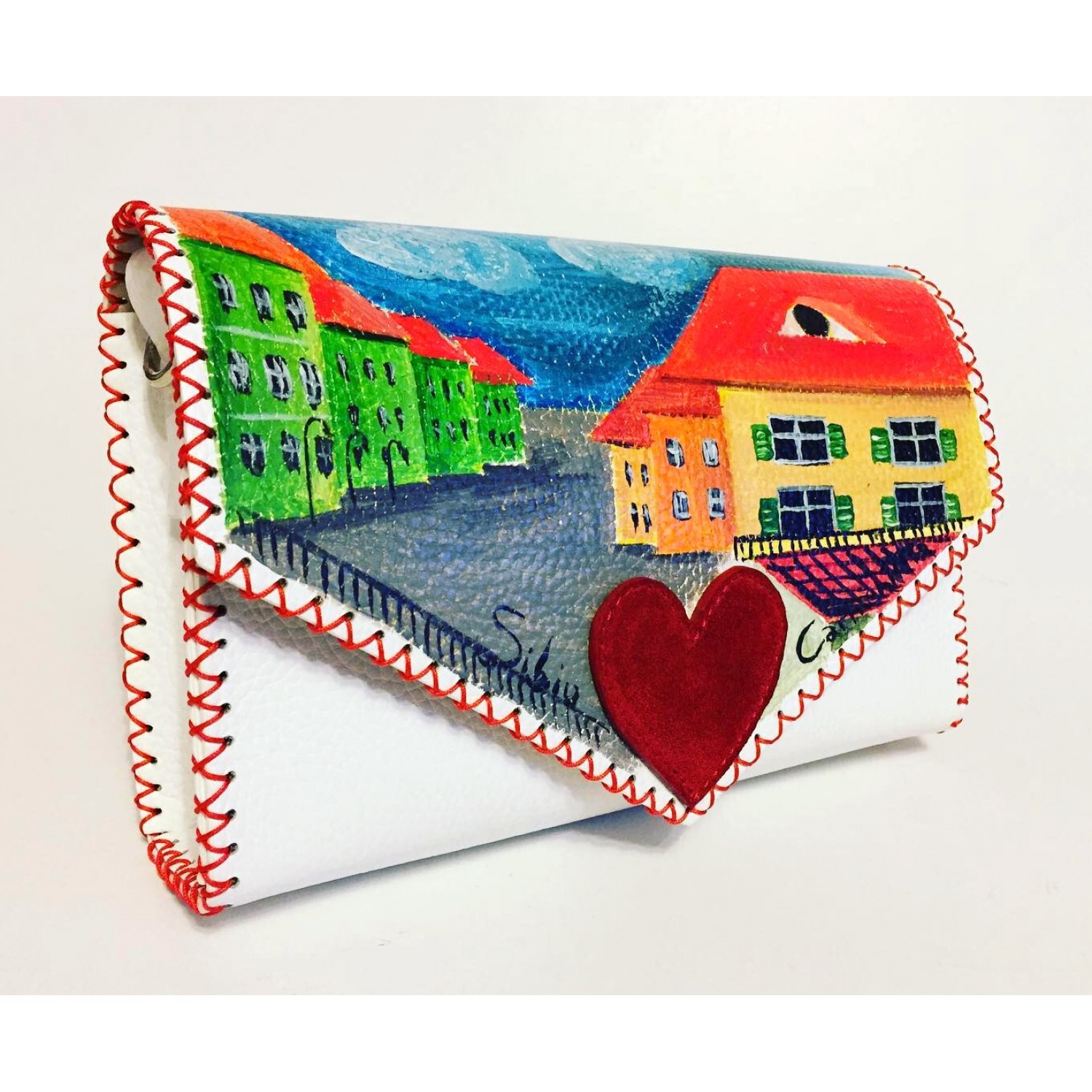 Sibiu Streetview Handpainted White Leather Bag by Carmenittta